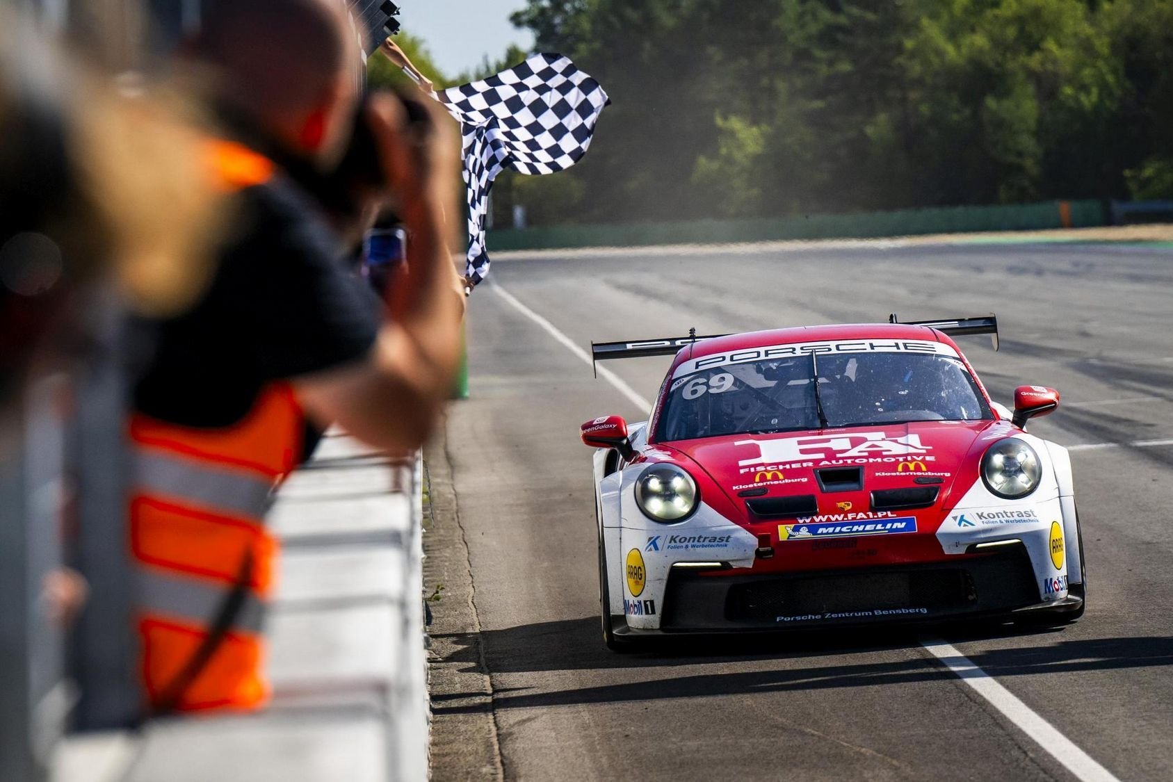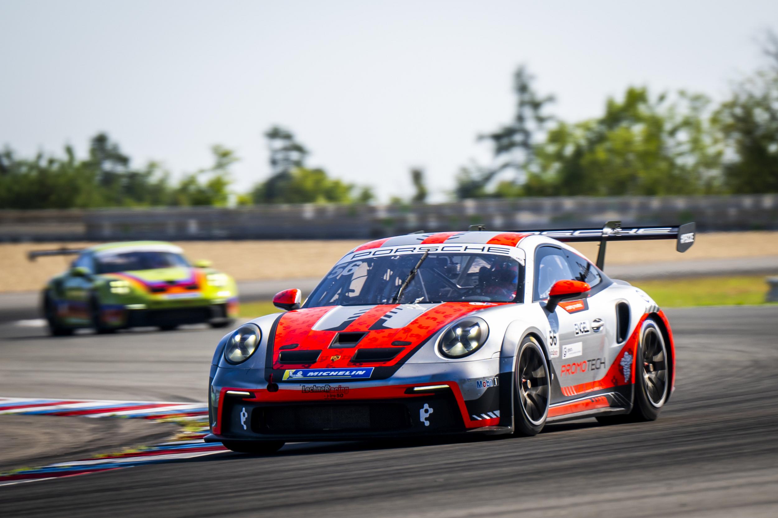 The final race of the Porsche Sprint Challenge Central Europe 2025, the “100 Miles of Czech Republic”, saw the third victory of the day for Richard Gonda, who crossed the finish line 4 seconds ahead of Ivan Peklin. Even as the Ukrainian received a six-second penalty for starting one second too early from the pitlane into the second half of the race, he kept his position due to a lot of drama at the end of the race.